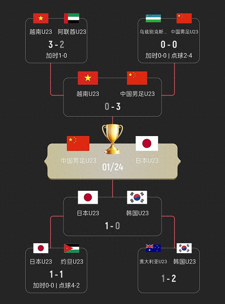 北京时间2026年1月22日,中国U23男足与日本U23的比赛将于24日晚23点正式开始,作为本届U23亚洲杯的最终决赛,是日本队实现3次夺冠?还是中国U23首次问鼎亚洲杯冠军?再过两天的时间就会有最终结果。