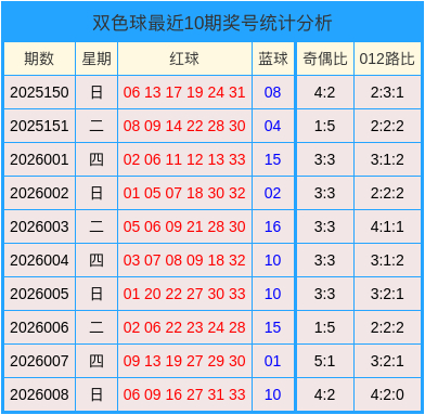 开奖回顾:第2026008期双色球开奖号码为:06、09、16、27、31、33+10。奇偶比为4:2,012路比为4:2:0。