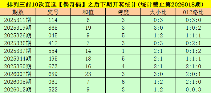 开奖回顾:排列三第2026018期开出奖号:896,类型为组六,和值为23,奇偶比为1:2,大小比为3:0,跨度为3。