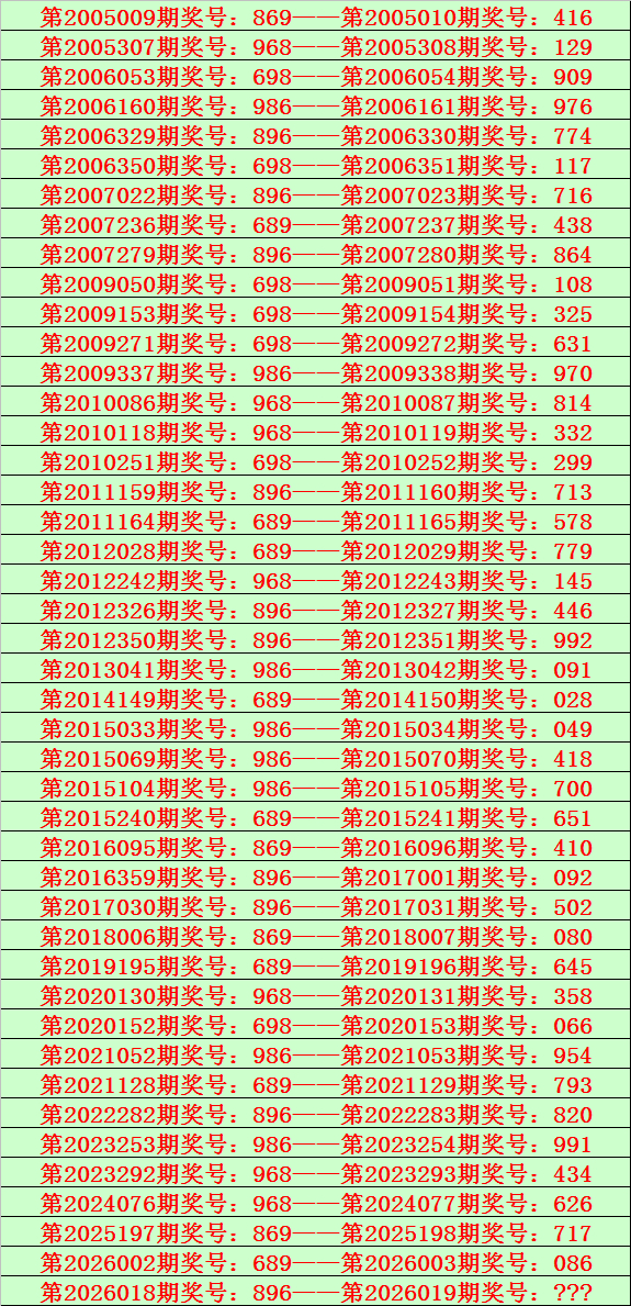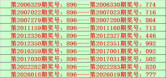 其中,开云组三开出15次,组六开出28次。另外,在下期开奖中,有32期奖号包含689中的重号,有11期奖号不包含重号,本期不看好重号出现,预计开出组六号码。 四、直选号码分析 排列三第2026018期开出奖号896,该号码直选类型历史上出现了10次,前9次开出之后期下期奖号为:774、716、864、713、446、992、092、502、820,见下表: