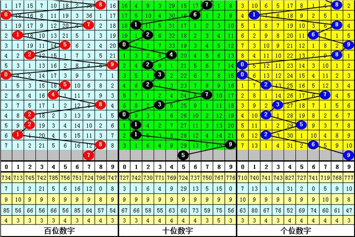 在最近9期开出奇偶分布:偶奇偶的奖号为:438-836-276-412-012-032-830-878-030,在下期出现号码分别为:865-045-412-554-495-673-689-061-522。其中百十个位号码分布情况如下: