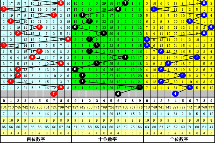 百位号码:百位上期奖号为0路、偶数、大号:8,历史上百位号码8共开出796期,前一次开出期数在第2026014期,上期奖号隔3期再次开出。 在百位前9次出现号码8之后,下期百位分别开出奖号:7-0-8-3-0-6-6-0-2,其中开出号码个数012路比是6:1:2,奇偶比是2:7,大小比是4:5。 本期百位看好大号出现,注意号码7。