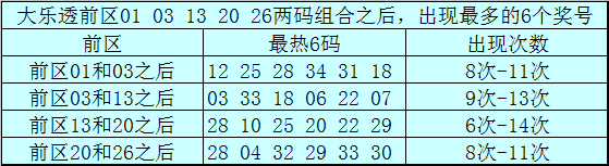 前区冷码统计:大乐透第26007期前区奖号为:01、03、13、20、26,截止第26007期历史上大乐透已经开出了2825期奖号了,在连续两码奖号中: