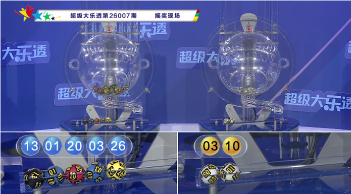 体彩大乐透第26007期奖号为:01 03 13 20 26+03 10,前区奇偶比为3:2,大小比为2:3,012路比为1:2:2。后区奇偶比为1:1,大小比为1:1。