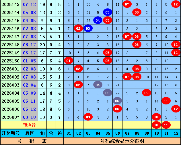 后区分析:在第008期历史同期开奖中,和值大小为6:13,跨度奇偶比为12:7,本期后区注意两码10和11。