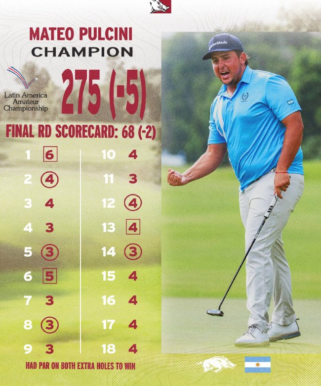 北京时间1月19日,马特奥-普尔奇尼(Mateo Pulcini)在最后一个小时推进一双关键保帕推杆,并于第二个加洞凭借3英尺保帕推锁定胜局,赢得拉丁美洲业余锦标赛冠军。这位阿根廷球手由此获得美国大师赛、美国公开赛和英国公开赛三场大满贯的参赛资格。 25岁的普尔奇尼成为该赛事自2015年创办以来最年长的冠军。决赛轮他交出68杆,低于标准杆2杆,力压密苏里大学四年级学生、志在成为委内瑞拉首位赛事冠军的比希利奥-帕兹(Virgilio Paz)。 “我们一直梦想赢得这场比赛,”普尔奇尼赛后说道,“此刻我无言以对,只有满心喜悦与对身边所有人的感激。” {jz:field.toptypename/}同样在利马高尔夫俱乐部打出68杆,帕兹在难度极高的第17洞,四杆洞推进25英尺小鸟推,追平领先杆数。普尔奇尼曾为俄克拉荷马基督大学效力、后转入阿肯色大学上最后一年。面对这样的战况,他毫不示弱,随即以一记20英尺保帕推守住并列领先。 常规赛第18洞,帕兹开球过果岭,切杆后球距洞约8英尺,他稳稳推进,将总成绩锁定在275杆,低于标准杆5杆,开云app与普尔奇尼战平,造就了赛事史上第二次加洞赛。 延长赛首洞,普尔奇尼迎来关键转折:他的球落入右侧长草区不利位置,下一杆的击球轨迹本将飞入树林,却奇迹般穿过所有粗壮枝干,最终落在距旗杆约40码处。随后他切至18英尺外并推进保帕推,将比赛拖入第二个加洞。 “收官阶段非常紧张,”普尔奇尼坦言,“但我始终尝试享受过程、保持笑容。既然实现了本周初的梦想,何不把握机会尽情享受?” 帕兹在加洞赛第二洞将球打入18号洞左侧长草,受到树木部分遮挡,击出的高飞球偏右落至果岭旁树根旁的裸露土地。他弯腰低身避开枝干,勉强切至25英尺外,最终未能推进保帕推。 “这是场精彩漫长的对决,”帕兹表示,“我为自己今天的表现自豪,将带着快乐重返校园。” 普尔奇尼成为阿根廷第三位赛事冠军,智利也曾诞生三位胜者。 (小风) 声明:新浪网独家稿件,未经授权禁止转载! |