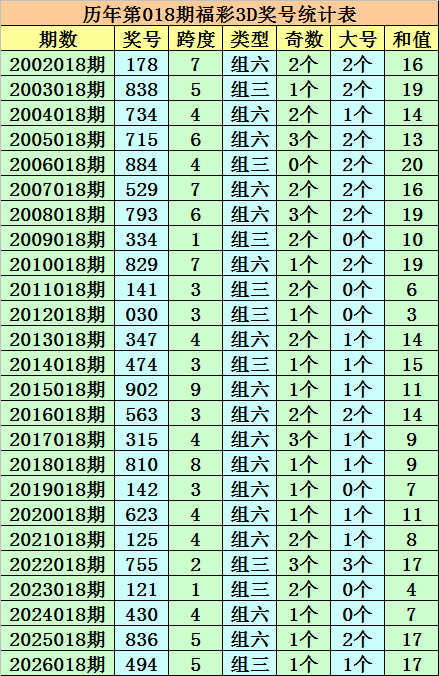 开奖回顾:福彩3D第2026018期奖号:494。