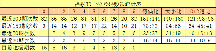 个位分析:近50期该位表现活跃的号码有:1出现8期,0、2出现7期;表现较冷的号码有:4、8、9开出3期。该位号码奇偶比为25:25,大小比为21:29。本期该位杀两码3、7,防号码0、2、9出现,精选一码9。