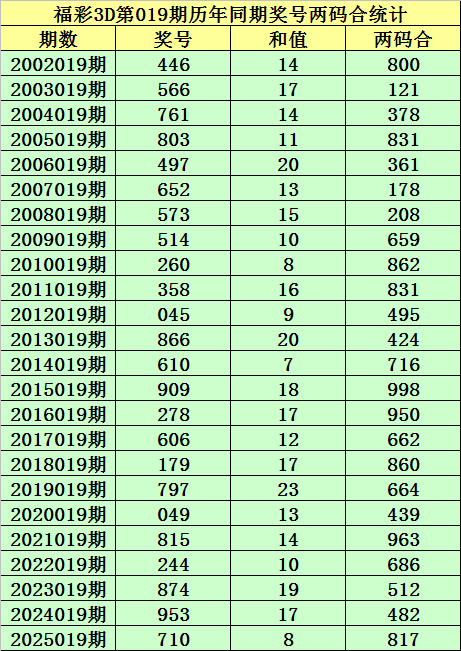 福彩3D第019期,历史上期开出24次奖号,其奖号分别为:446、566、761、803、497、652、573、514、260、358、045、866、610、909、278、606、179、797、049、815、244、874、953、710,奖号两码合差分别开出: 两码合:008、112、378、138、136、178、028、569、268、138、459、244、167、899、059、266、068、466、349、369、668、125、248、178; 其中两码合0-9开出频次分别为:两码合6、8开出12次,1开出9次,2、9开出7次,3、4开出6次,0开出5次,5、7开出4次,其中两码合奇偶比为30:42,大小比为39:33,012路比为30:19:23; {jz:field.toptypename/}另外,两码合出现期数从高到低分别为:8开出12期,6开出9期,1开出8期,2开出7期,开云3、9开出6期,4开出5期,0、5、7开出4期,本期两码合参考:1、4、5。