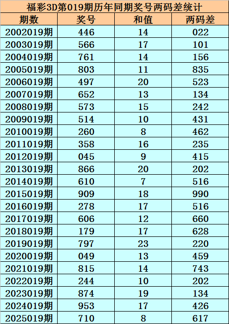 两码差:022、011、156、358、235、134、224、134、246、235、145、022、156、099、156、066、268、022、459、347、022、134、246、167; 其中两码差0-9开出频次分别为:两码差2开出15次,1开出10次,4、6开出9次,5开出8次,0、3开出7次,9开出3次,7、8开出2次,其中两码差奇偶比为30:42,大小比为24:48,012路比为26:21:25; 另外,两码差出现期数从高到低分别为:2开出10期,1、4开出9期,5、6开出8期,0、3开出7期,7、8、9开出2期,本期两码差参考:1、3、4。