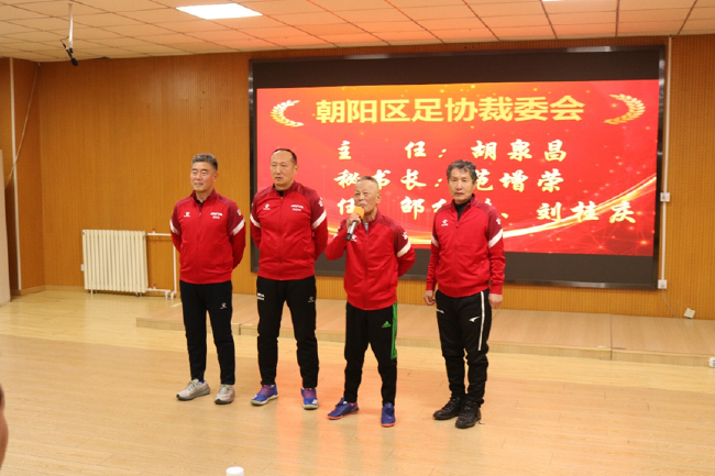 会议最后,朝阳区裁委会胡泉昌主任,范增荣秘书长,邵红耕、刘桂庆副主任一起为全区的足球裁判人员送上了新年的祝福。