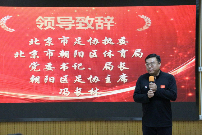 随后,冯长林局长发表致辞,要求朝阳区裁判人员要守住三条线:一是筑牢思想的防线——要持续、勤奋的学习,筑牢思想的防线,思想不能滑坡;二是守住职业道德的底线——自觉守住底线,终身自觉的知敬畏;三是守住规则的红线——要在实践中研究、在研究中成长,才能更好把握规则。同时指出,今年是世界杯年,结合足球赛事,号召大家积极参与到朝阳区“体育+”融合发展新路径中来,同时对朝阳区未来足球裁判事业发展提出殷切期望,鼓励全体裁判人员再接再厉,提升专业水平。